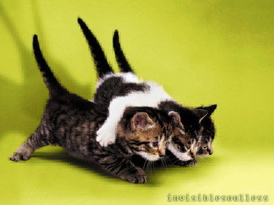 Hah, I wish they were trained to pose! What tends to happen is I'm trying to get action shots of a single kitten jumping through the point I've got the camera aimed/focused at and the other kitten decides it looks like fun and jumps up in the way. In this instance serendipity resulted in a good shot .