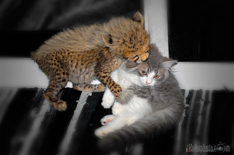 Amazing shot! You captured the qualities of these two breeds quite well. I love Bengals and Savannahs, and Abyssinians are quite similar to them in bodybuild.