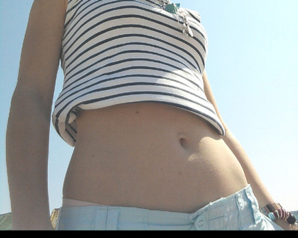 I think it would take a lot of nervous, furtive staring, taking in the unique, hypnotic curve of your belly button, the way it tightens and flexes as you stretch upward to reveal your bare belly, drawn in by the alluring shape of your navel before finally, hesitantly letting my finger glide across your skin and just barely poke inside, shivering at the warmth and softness of your navelΒ
