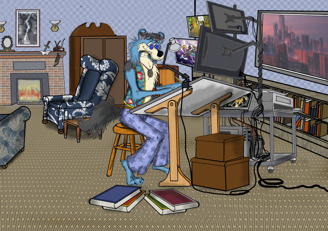 Been listening to a lot of "LoFi Hip-Hop" on YouTube while working on art and thought it would be neat to put myself in that scenario (which features a girl listening to music and writing in a journal) . Also a good representation of the whole "Art imitates Life" concept; since I do listen to music while working on art (digitally and traditionally). Also loved drawing my belly pressed against the desk ^^Related content