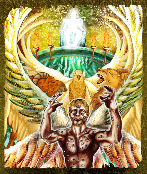 Another Trinity piece. I was going to place this as a t-shirt design but was met with opposition.Traditional charcoal drawing with photoshop colors.