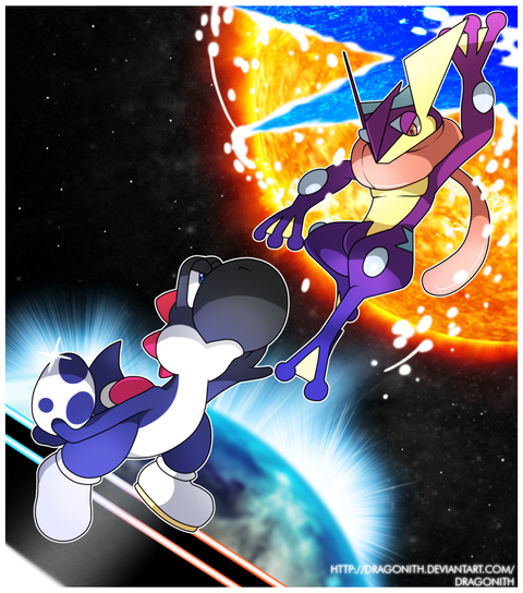 Aww! Yoshi looks so cute and Greninja looks SO EPIC! <3Β I like this pic very much, nice job! *adds to favorites*