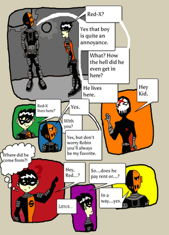 how not to like it im a total fan of red x and robing and raven they rock put it still so funny you are a great artist <(^_^)>