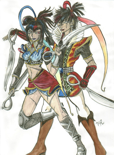Played around with a new coloring style with my oc's. It took only a quarter of my usual (more realistic style) time! What do you think?Related content