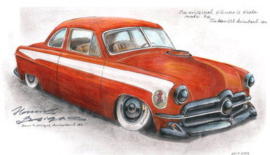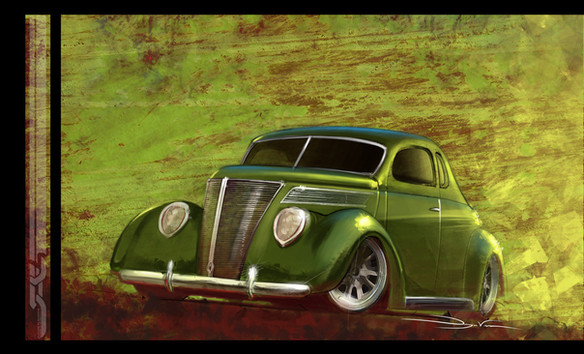 This is a new small print I did for the Grand National Hot Rod show. I drew it in Painter and rendered it in Photoshop. Then had it printed on the green toned paper. I only printed 60 of these so if your interested in getting one let me know. It is $10.00 plus shipping. I will soon have a store up at my website so you will be able to purchase all my prints.Related content