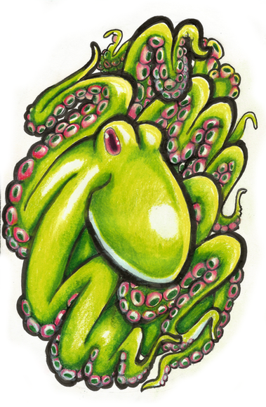 Awesome job, I love the atmosphere. Good job with the octopus itself, musta taken forever to color in all those suckers.