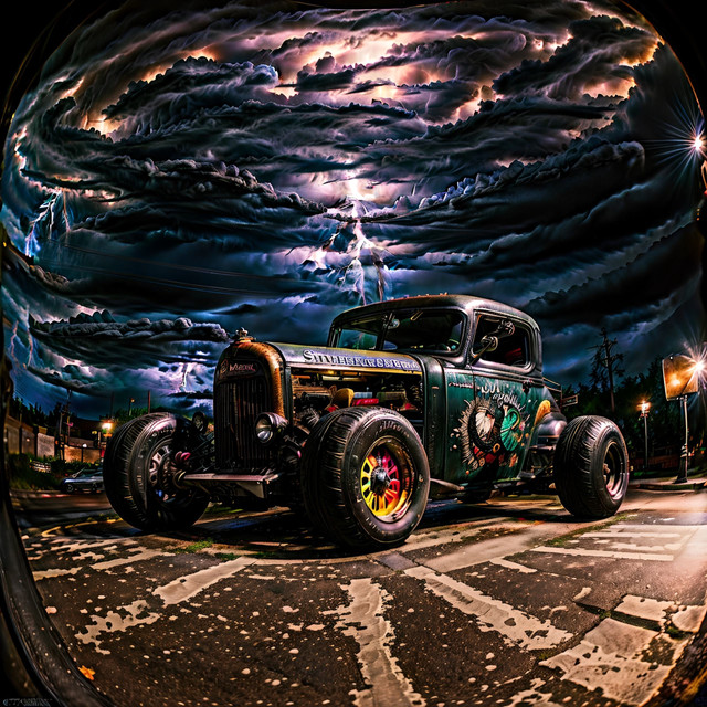 Ah, but who is being chased? The rat rod, or the storm?