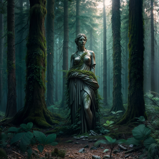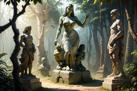 The forest was dense, with trees so tall they seemed to touch the heavens. The trio had been trekking for hours when they stumbled upon a clearing. What they saw left them in awe. The clearing was filled with statues. Not just any statues, but lifelike representations of humans.