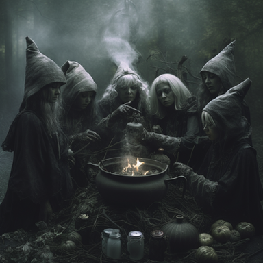 Five witches gathered 'round,