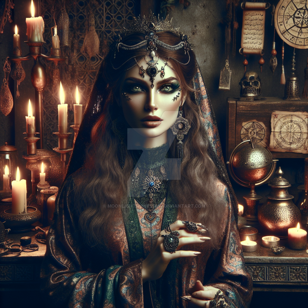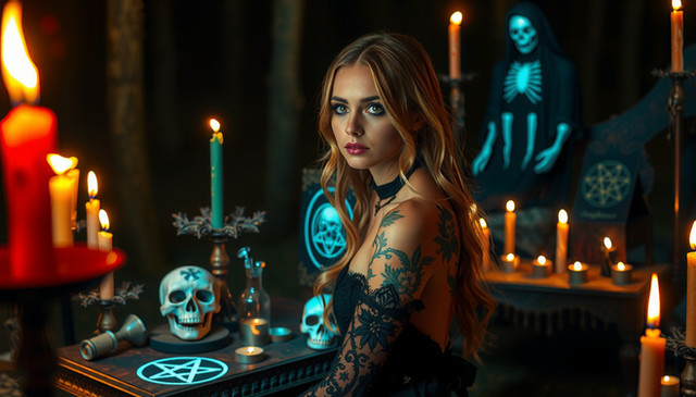 Yet, with each new moon, as she stands within the sacred circle, surrounded by candles that flicker in the darkness, and incantations that fill the air, the weight of her past becomes a tangible presence, a chain around her heart. She calls upon the elements, the spirits, and the deities she holds dear, offering her fears, her doubts, and her regrets to the flames, hoping to see them reduced to ashes, to be reborn from them stronger, purer.