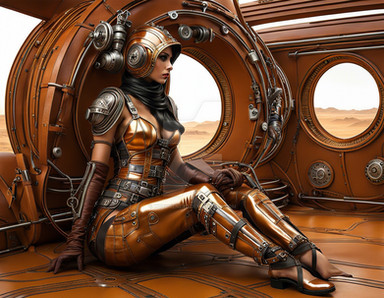 The woman shifted in her seat, trying to make herself smaller. She had never been comfortable around automatons, no matter how advanced they were. The automaton beside her was especially intimidating, with its imposing frame and glowing eyes.