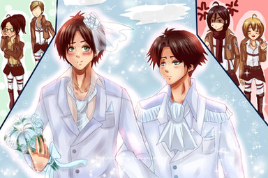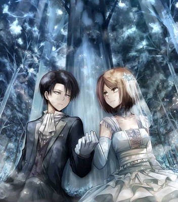 "If only" is exactly what I thought when I saw this, before seeing the title. It's beautiful. Soft yet realistic; the angels wings on Petra's dress are appropriate. Also, I find it kinda funny that Levi has that stoic look even on his wedding day.