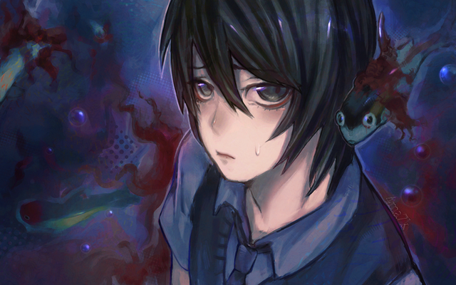 #anime #background #blood #blue #boy #dark #drown #drowning #pretty #sea #water