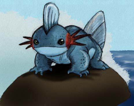 This looks marvellous! I love the soft style you've painted it in and the design is great; it really does bring out Marshtomp's features in a believable way And it's so cute too XD