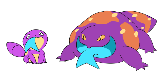 ALSO I almost forgot! I drew a sketch of it standing just to show how it would. I imagine it mainly crawling, like Swampert is shown to do, but being capable of standing and maybe even walking upright for a few steps.