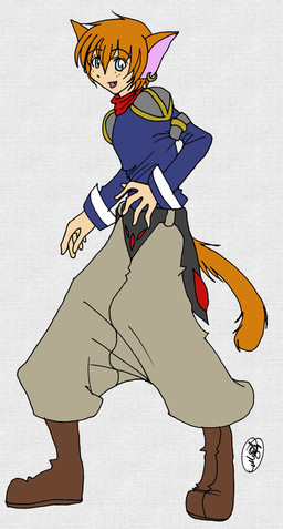 Cool character design! I like how it's colored - all soft and rpg-like! Nice!