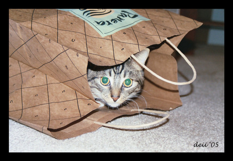 Peep found a empty container for film and started to play⦠I guess he wanted to take pictures as well.Title: Picturing Peep