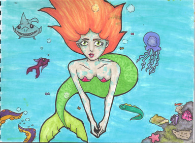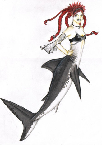 So here ya got some critters...Pretty much a mermaid, a fish that eats human waste (yay), and a photosynthetic shark that can create its own energy with the chloroplasts within its fins! It has plant cell-like similarities in the shark.