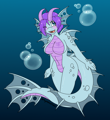 A cat mermaidish character I made for Indie!It was inspired by WaywardWaterGods character Teague!