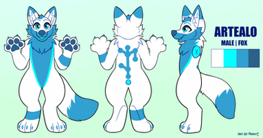 A reference sheet of the ice kitsune Neve.All finished and ready to use those ice powers.