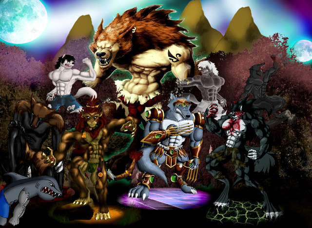 FINALLY. Its done.A background commission composed of many video game werewolves.