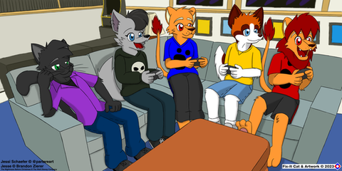 In front of the couch is Saberwulf.