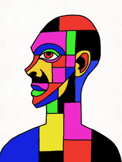 superb. seriously. if you did this in oil on canvas i'm sure you could sell it. the color transition is nice and the assymetry and the planes on his face is awesome.