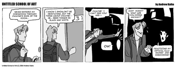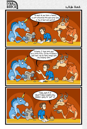 Cute drawing style, but it seems I'm the only one who doesn't get a big kick out of the humor...I must be missing the inside joke.