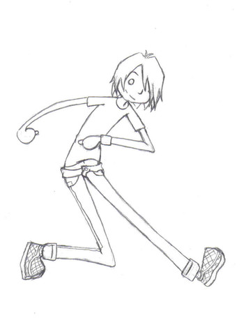 I kinda see what you mean about the folds in the pants being all wrong but it doesn't look too bad. It would probably look a lot cooler if you did it on plain white paper (as opposed to lined) but since I never have plain paper around when I want to sketch something I know how that goes