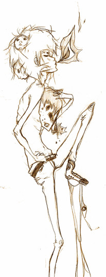 I just did this sketch in a lecture this evening. Kinda liked it so I scanned it... and here it is. Hrmm.. the thing about sketching in pen is that you can't rub out stupid mistakes. The folds in the pants are all over the place.. and they don't flow right at all.. I'm yet to master that.And hands.. ugh.. so useful yet so hard to draw.