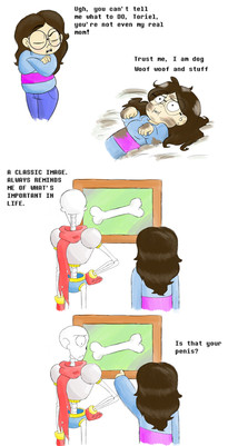 So ironically, she's... guilty of the exact same thing she (rightfully) accuses her husband of at the end... but nobody actually calls her out on it and she doesn't seem to realize it, herself. And to give Toby the benefit of the doubt, maybe it makes sense for that to happen, storywise; I don't believe anyone there but Sans knows that Toriel has been hiding in a spot where she came into contact with all fallen humans and then despite that tasked someone else with caring for future ones, and maybe Sans has a soft spot for her that convinces him to withold criticism. But I do hope it's addressed in a sequel if we get one, because damn, that was very unfair of her to Asgore, Sans, and those dead kids.