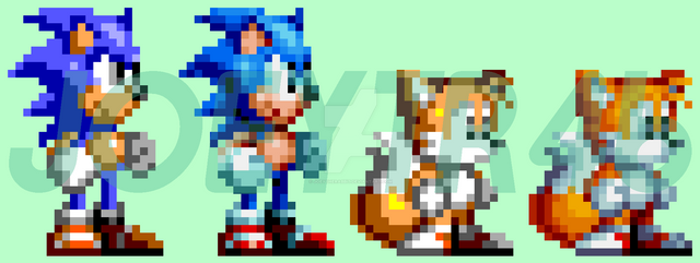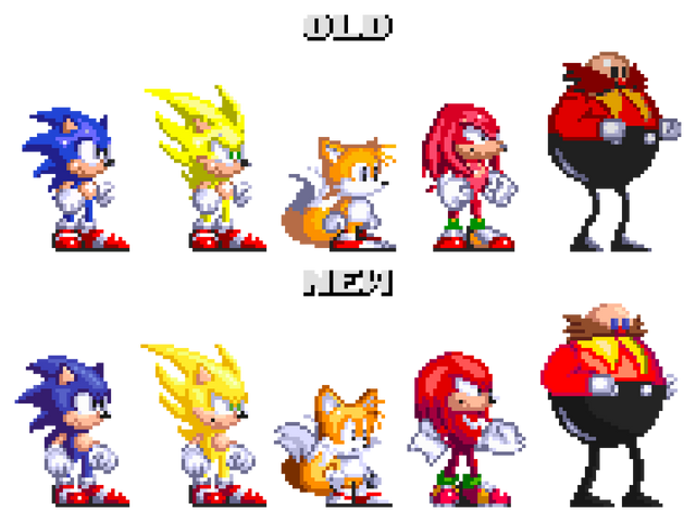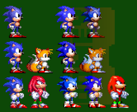 the three first ones are old attempts on Sonic 1 Tails & Knuckles , their reworks are based on those recent Sonic Genesis Styles (April 2021 - June 2021, ¹ ² ³ ).