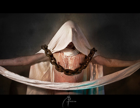 my god... i love the reflection on the chains and the way his body lays as they support him.