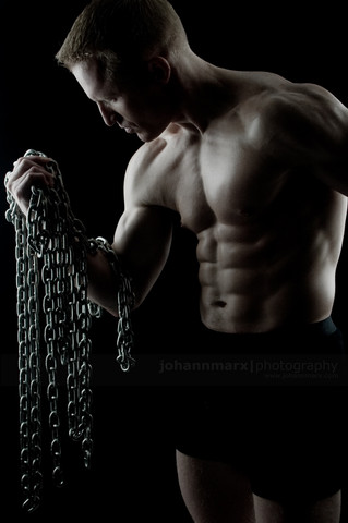 Fantastic, I love how there's just enough light over his to chest to get a glint off the chain and show off the definiton in his neck and biceps..fabulous work.