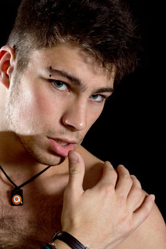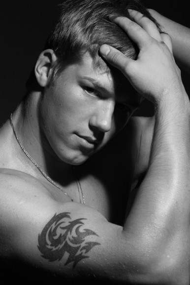 I would think that men are the hardest to photograph and keeps the shots refreshing and creative yet keeping their personality in check. Love the balance of the piercing eyes with the tattoo. Great pose...a pose any woman or man's man would love to wake up to. lol