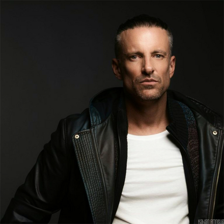 48cm Ring Light (65W) as main light and two Canon Speedlite 580EX II flashes in 2 meter high strip boxes with grids on behind him.Model: Ren Cronje