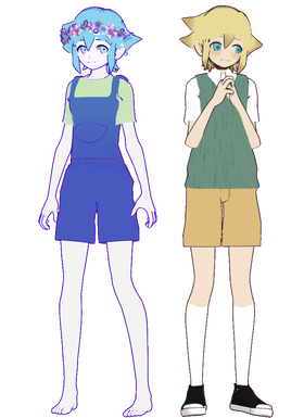 effects; both of the models have ttoon shader on them along with postrimlightning2d