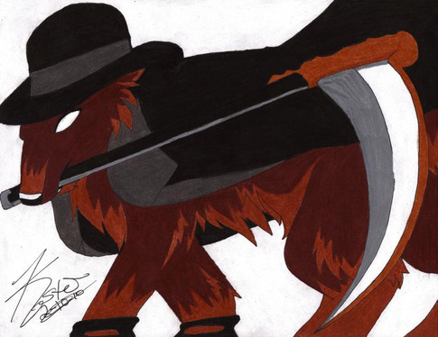 I was messing with blood effects. They turned out alright, I'd say. And btw, he usually doesn't have the hat or the monocle as a fox, but I always draw him with the white cravat in both forms.