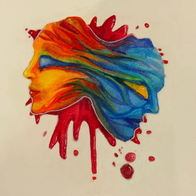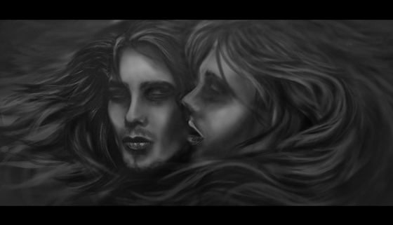 I love everything in this picture. The use of colours, the shading, the representation (Which is also quite enigmatic!) While the originality is strong in this one. The connection it shows through the unique veins would make you create your own story for this (I did not read the description of it, but I really feel like this is indeed love related.)