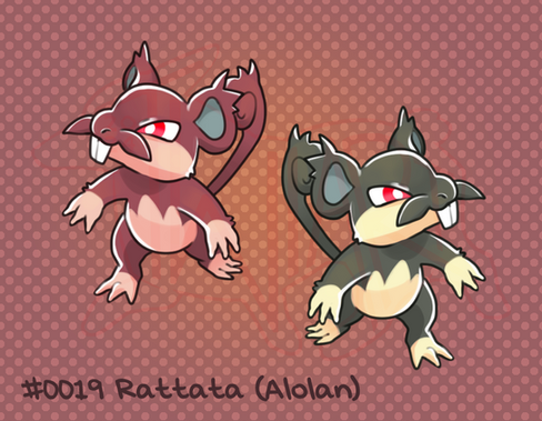 Alolan Rattata and Raticate are up first. I have some fondness of these regional variants. In some ways, they're more fun to raise than their Kantonian counterparts. The only real issue I have with this line is that... they tend to have the ability... Hustle. This is one of my least favorite abilities. I don't like things that drop accuracy. I'd rather my attacks just hit. I know that it boosts the Pokemon's attack power, but accuracy is important to me. I also like the fact that having an Alolan Rattata with you at the supermarket will ensure that you're picking only the freshest of groceries. And, if an Alolan Raticate "graces" your restaurant with its presence, you can be assured that your food is fresh and delicious. It's like... having a high class food taster. Unfortunately, they're rats, commonly thought of as pests, so most people, especially outside of Alola wouldn't give this Pokemon the light of day at their restaurant. Anyway, I hope you like.