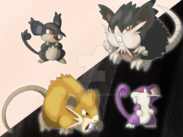 Alolan Rattata and Raticate belong to Nintendo/The Pokemon Company.