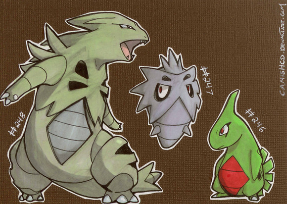 Next up are Rhyhorn, Rhydon and Rhyperior. Ugh... These three were so difficult to draw, and I think it shows. I'm not really fond of how any of these turned out. Sorry, first ever Pokemon, Rhydon... Anyway, has anyone ever had a surfing Rhydon? I'm not sure what to say about this line... Hm... Oh! I know! The English version of Rhyperior's voice is silly to me. It just straight up says "Rhyperior" in a very human way. There are other Pokemon like that, but Rhyperior is the first one that comes to mind. I hope you like!Rhyhorn, Rhydon, Rhyperior and Pokemon belong to Nintendo.