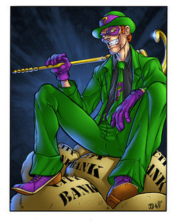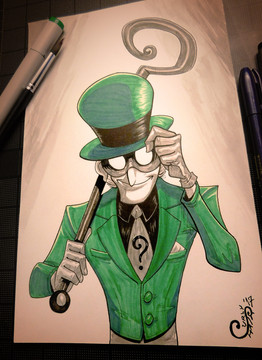 The Riddler: Holding the CowlDrawn with pencils, Letraset Markers and a White gel pen