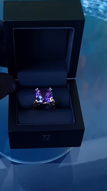 Zielinskiart - Checkerboard cut amethyst in golden bamboo ring