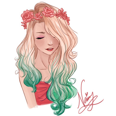 #digital #drawing #female #girl #hair #longhair #painting #portrait #roses #shoulders #woman #colorful #neckline