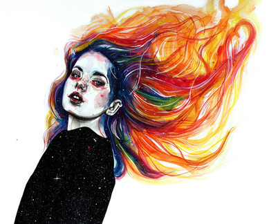 Her hair remind me of the feathers of a bird. The hair looks so unique and lovely! This is an awesome piece! Awesome work, Gilles! 😁❤️👍
