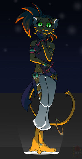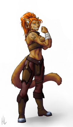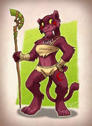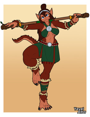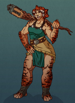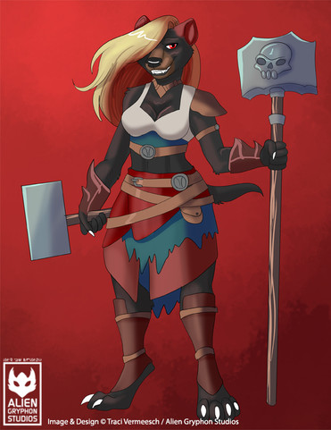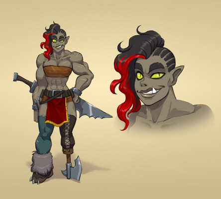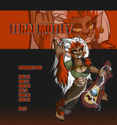 Wanted to sketch out an idea for a Bugbear Bard who uses a lightning infused lute as her instrument and combat weapon, turned into a full image instead.I call her Feral Motley.