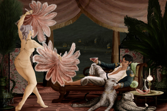 An elven outrider with his mount, a horned sabretooth lion.First published on elfwood in 2010, my first mod pick there. Some details I could do better now but certainly not the animal, of which I am still very proud