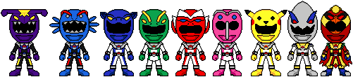 Hmm the beetle from ninja storm and jared the evil black lion ranger from jungle force... and the silver ranger from Spd (who just happened to be a dog...) and Im sure i saw the red one somewhere...