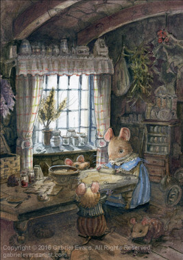 Beautiful water coloring, everything in here is just so adorable reminds me of the Beatrix Potter illustration , nice job.